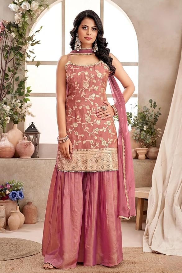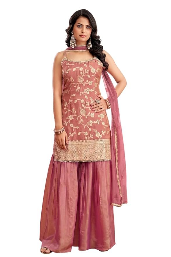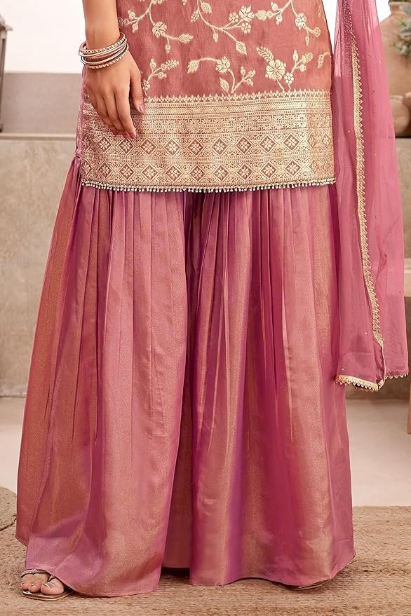 Salwar – jacquard Silk, Sharara – Tissue Silk, and Dupatta – Net Suitable for weddings wear , Party wear and special occasion this can be paired with beautiful earrings and footwear to enhance your appearance Premium Fabric Soft, breathable, and lightweight fabric ensures comfort and durability for all-day wear.